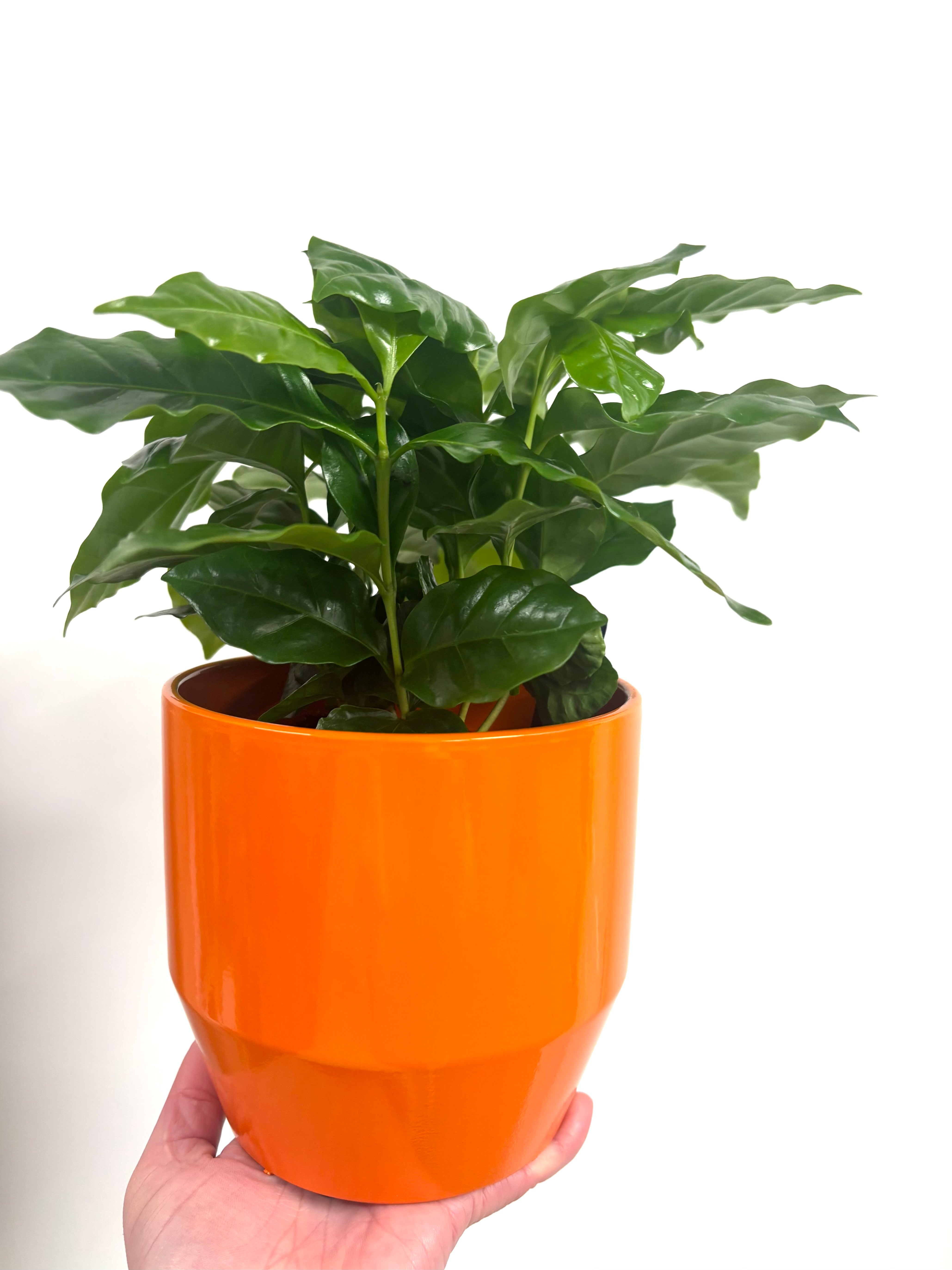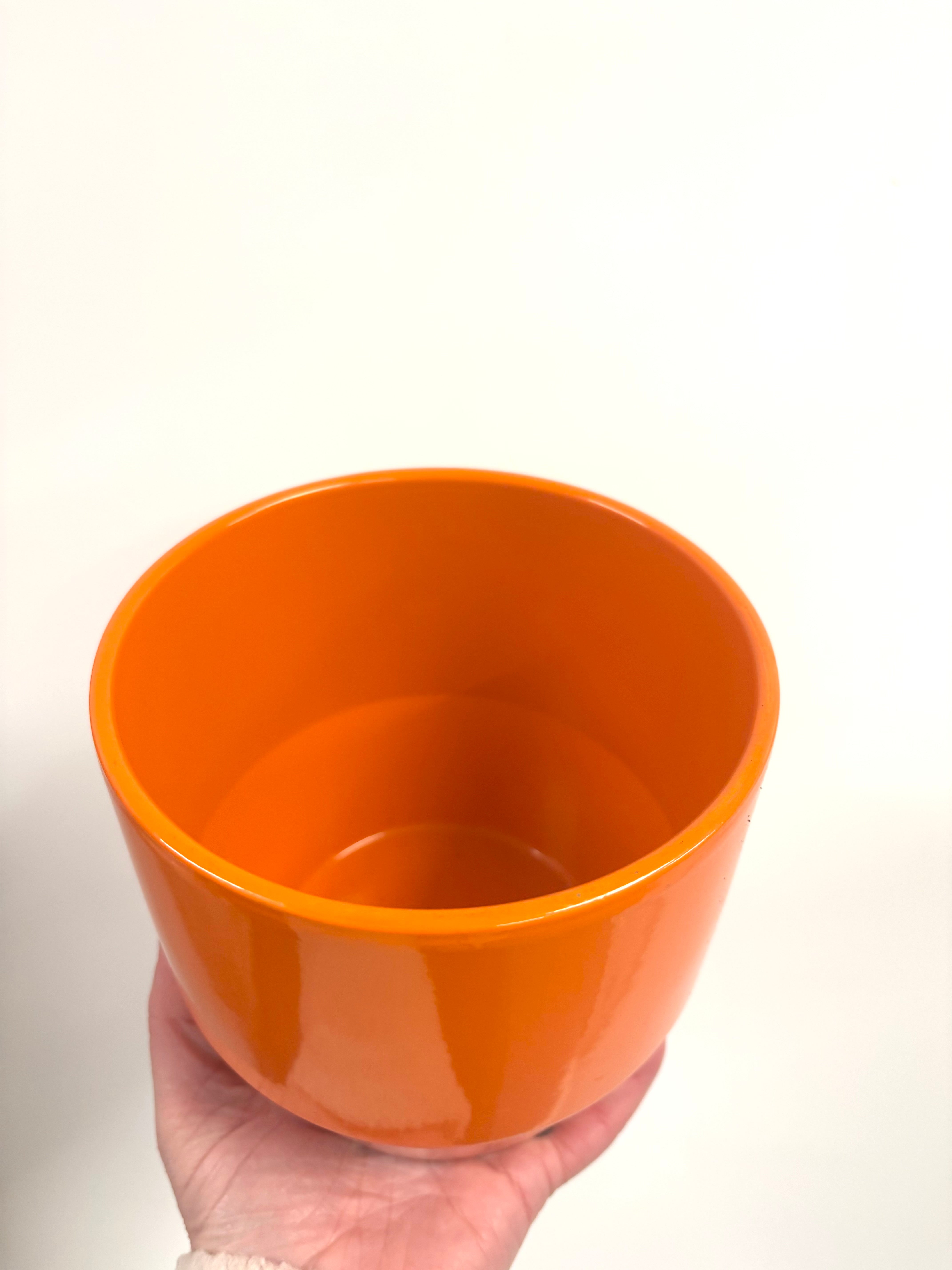 Bright orange pot. Ceramic orange pot. Perfect for a 12-13cm nursery pot Height of pot 14cm PLANT NOT INCLUDED. Read more