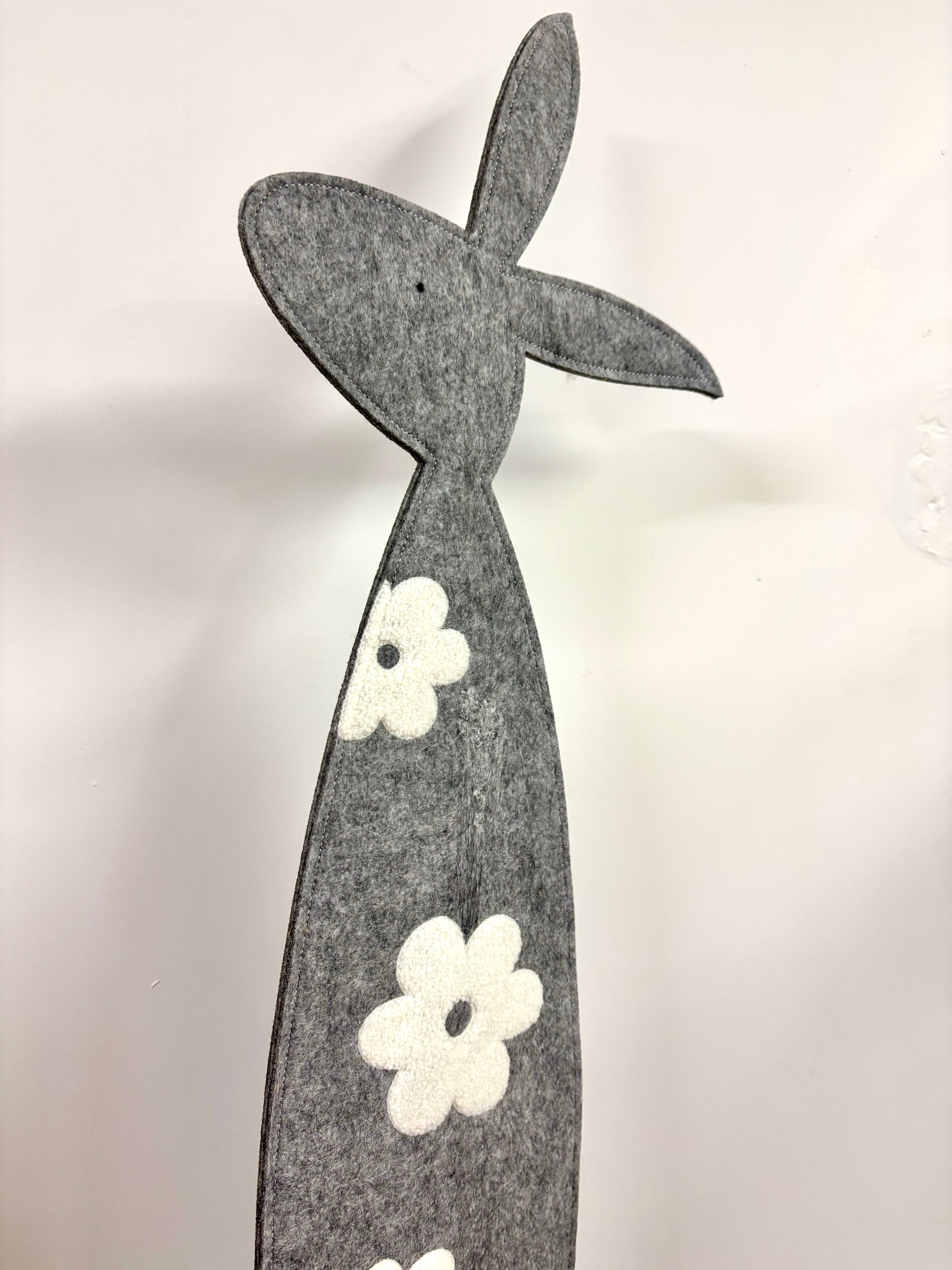 Felt rabbit Large felt grey rabbit. She sits on a wooden base and stands around 70cm high. Read more