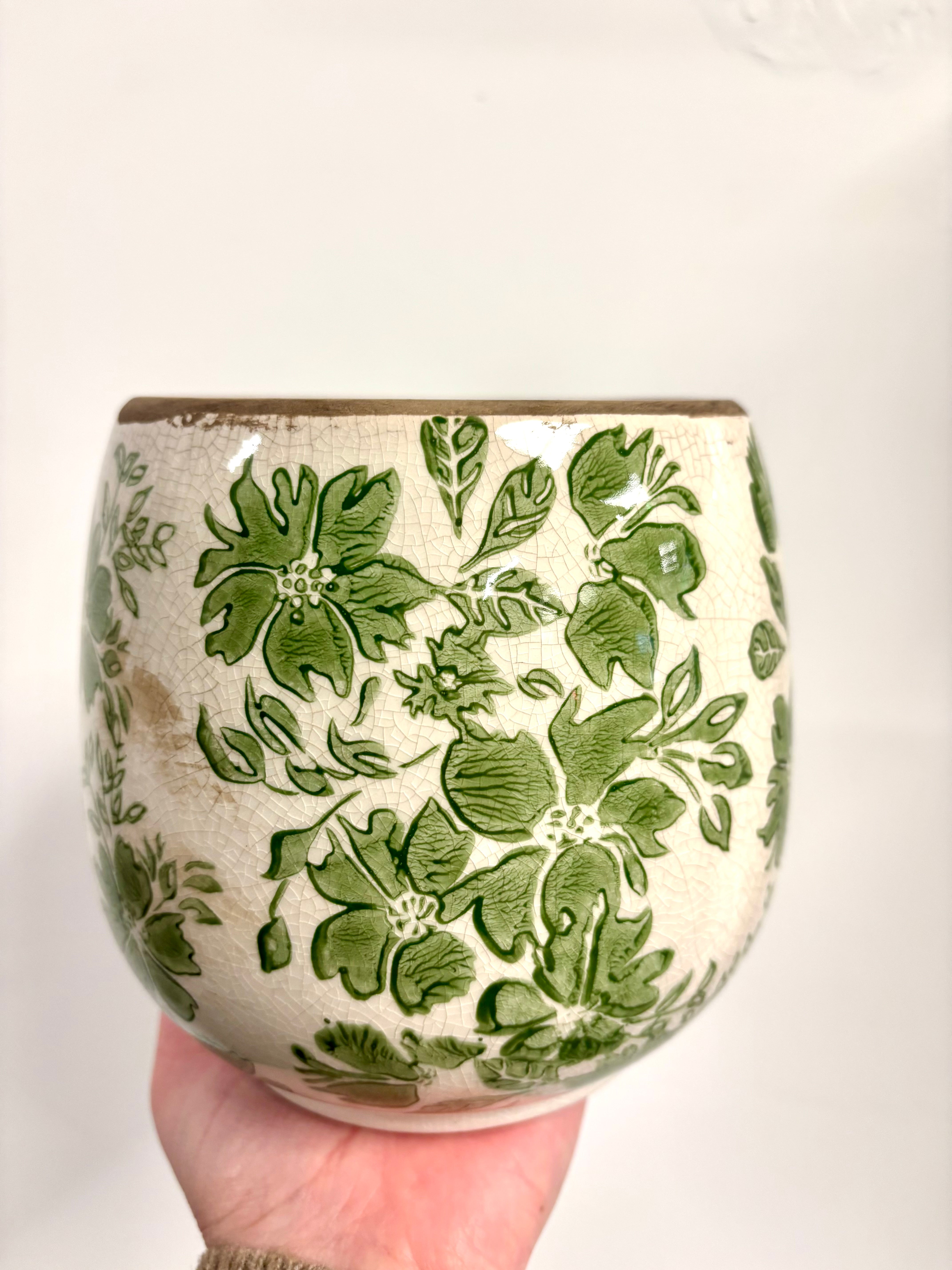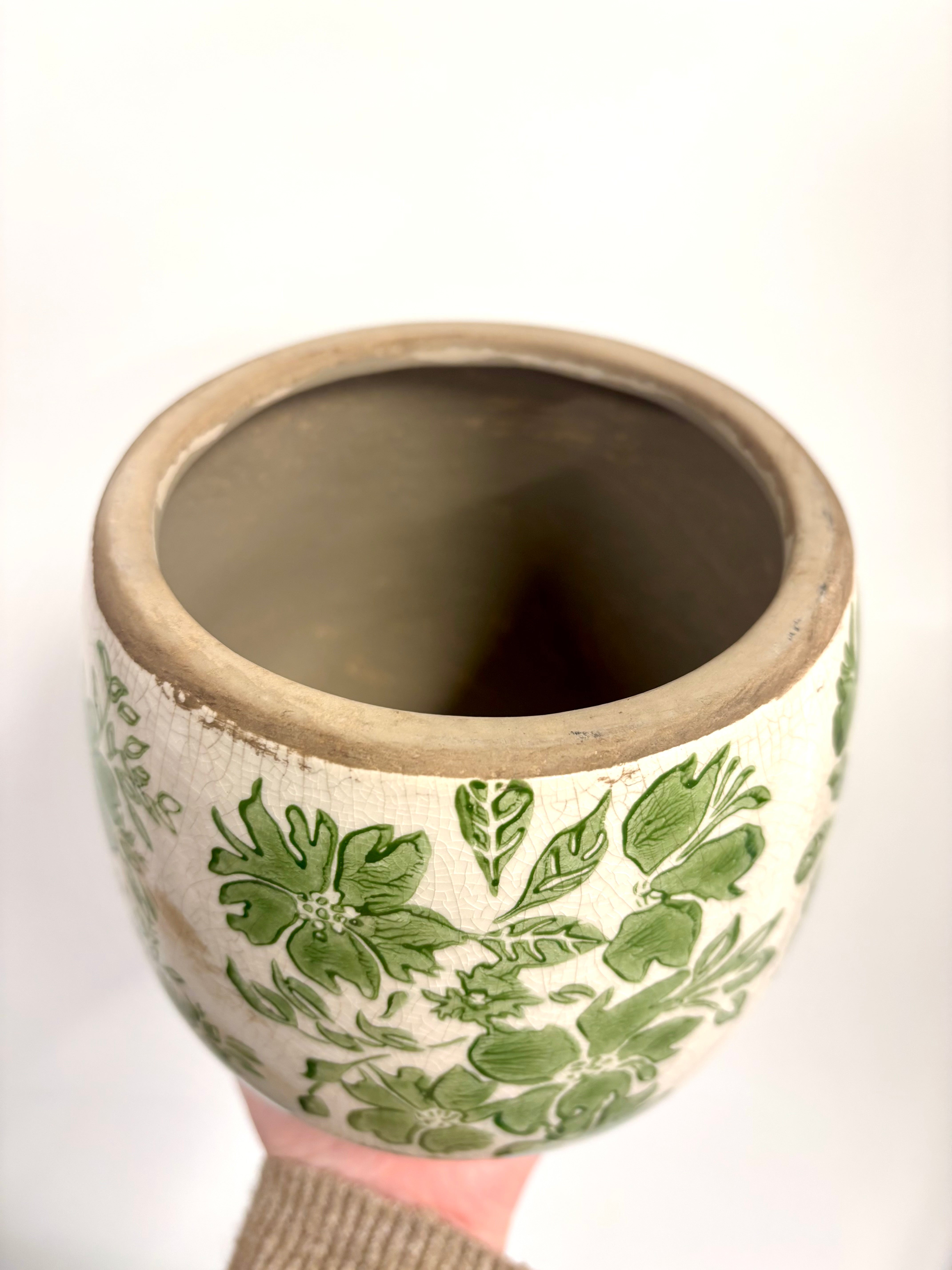 Green leaf pot Glazed, rustic and just stunning. Perfect for a 12cm nursery pot / 15cm high Read more