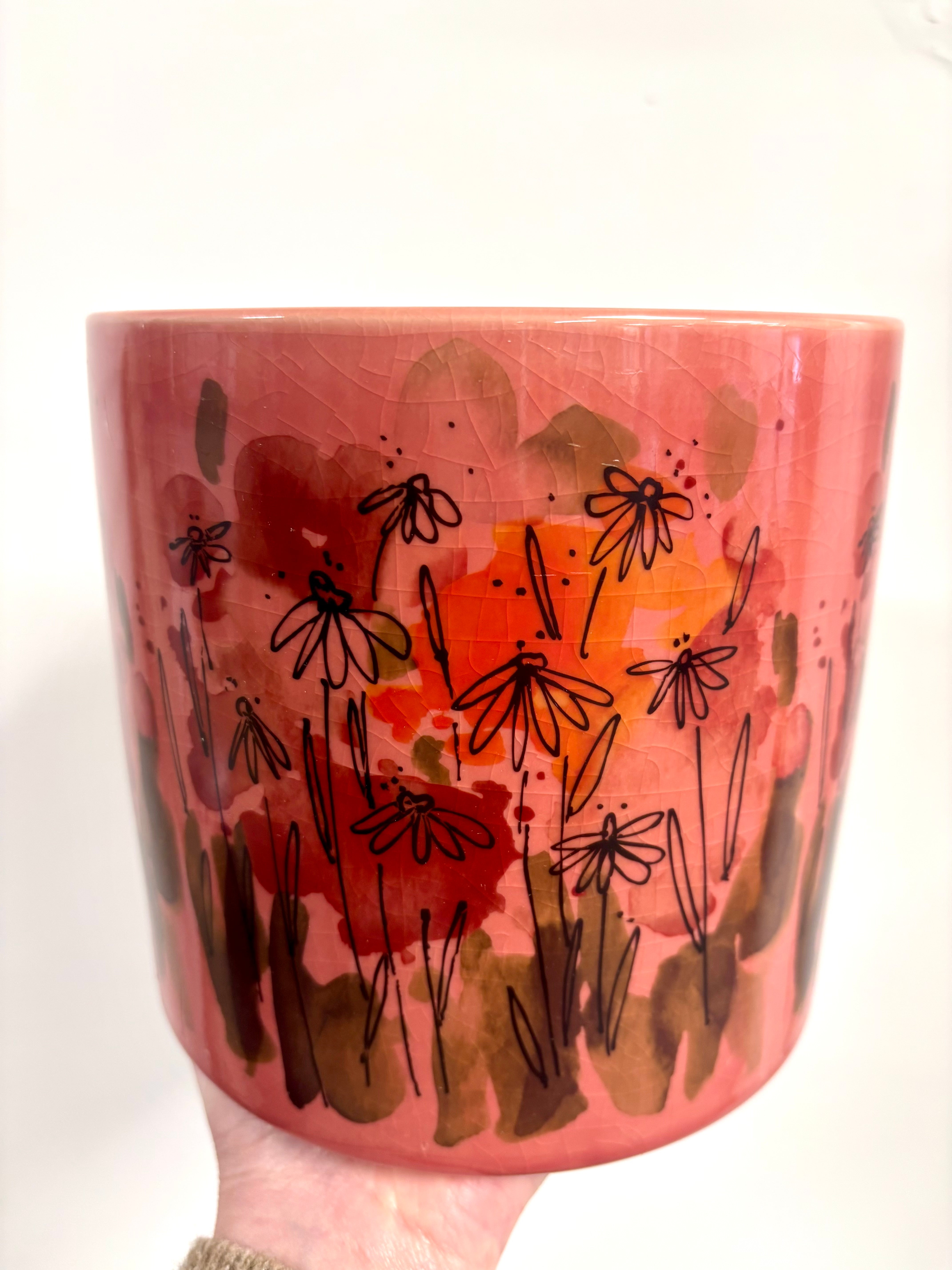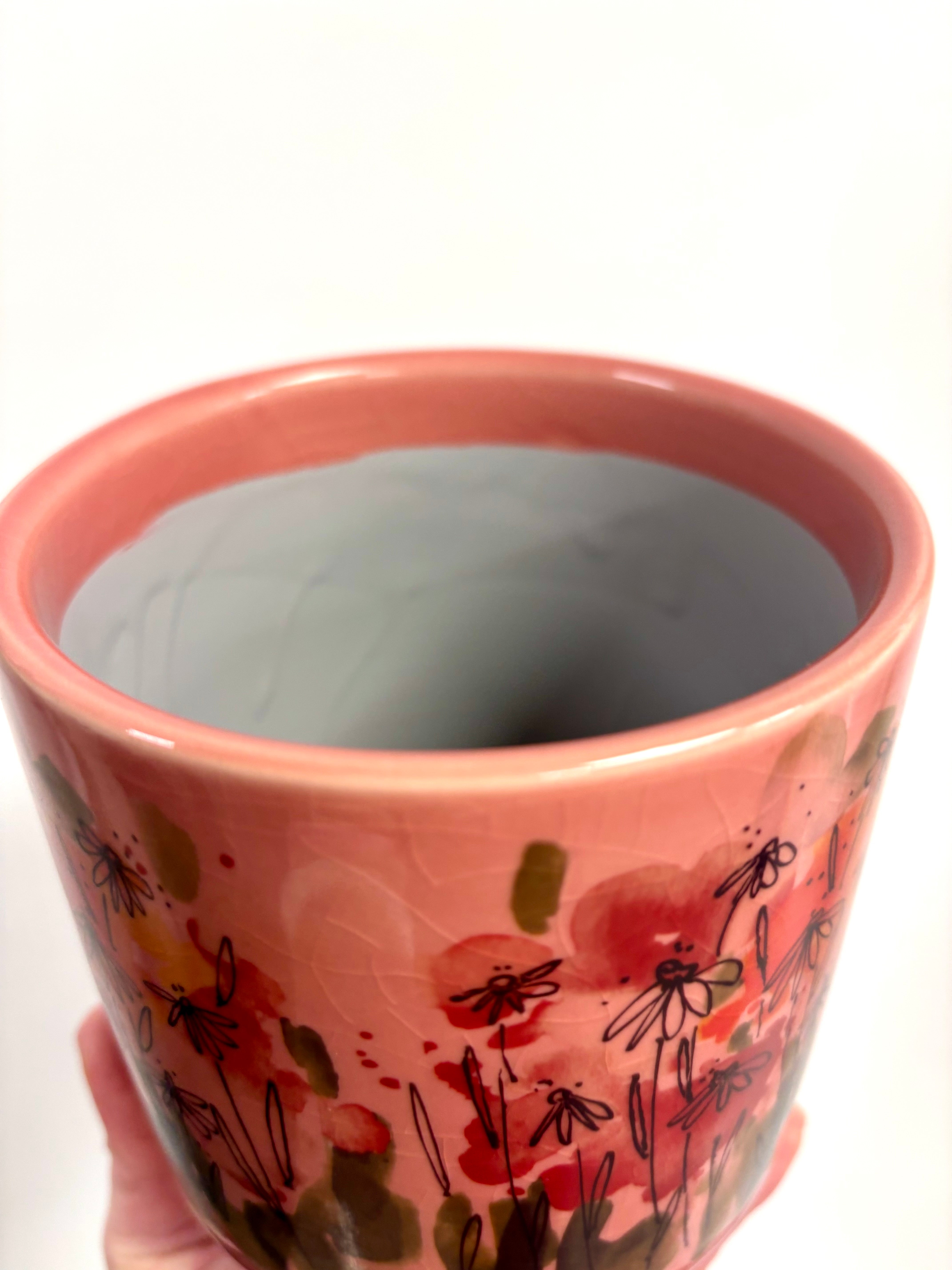 Rose floral pots Set of 3 glazed Rose floral design plant pots. Perfect for nursery pots of - 14.5cm/12cm/10cm Read more