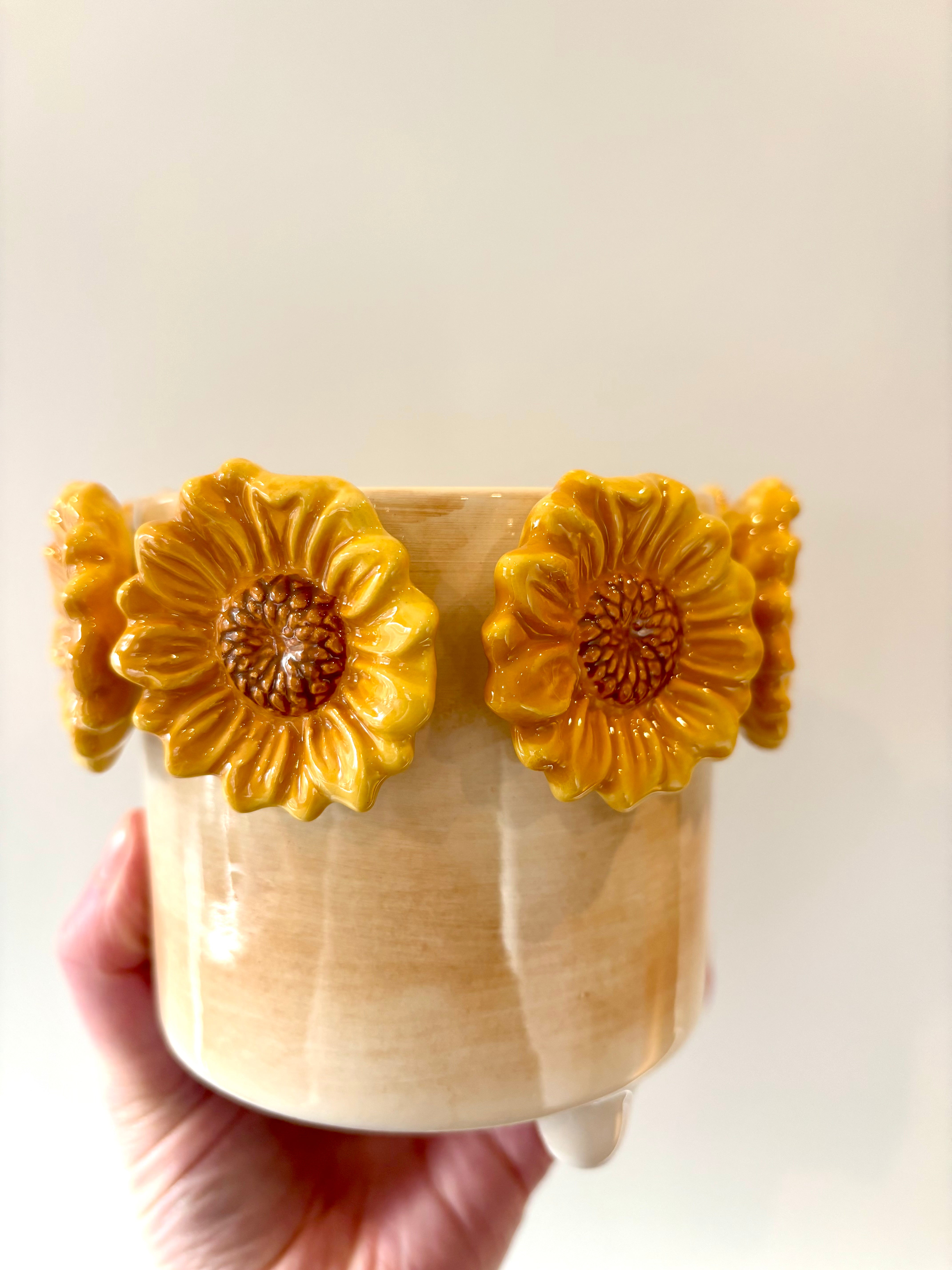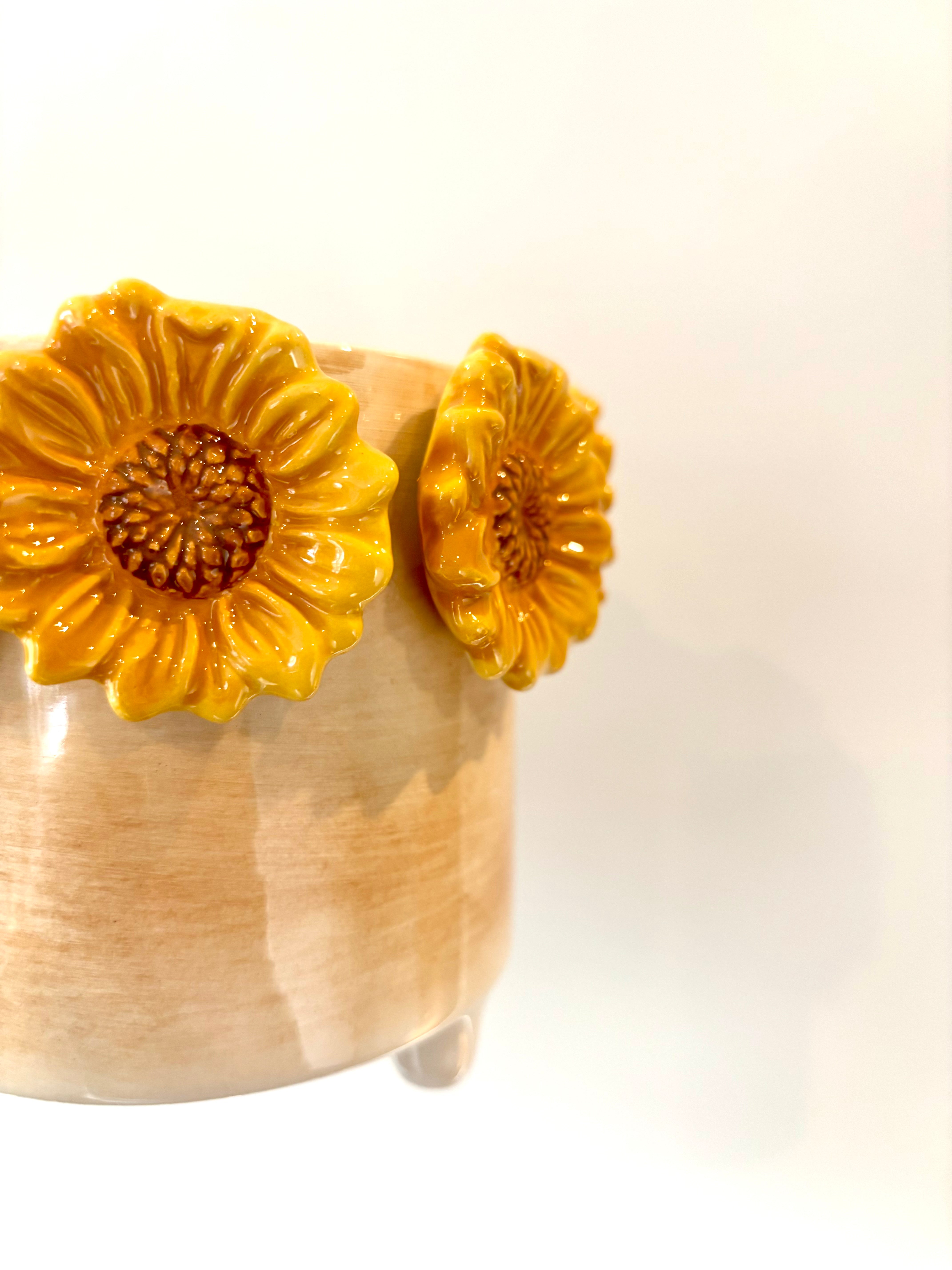 Sunflower pot Ceramic pot with 3D sunflowers Perfect for nursery pots 12cm diameter Read more